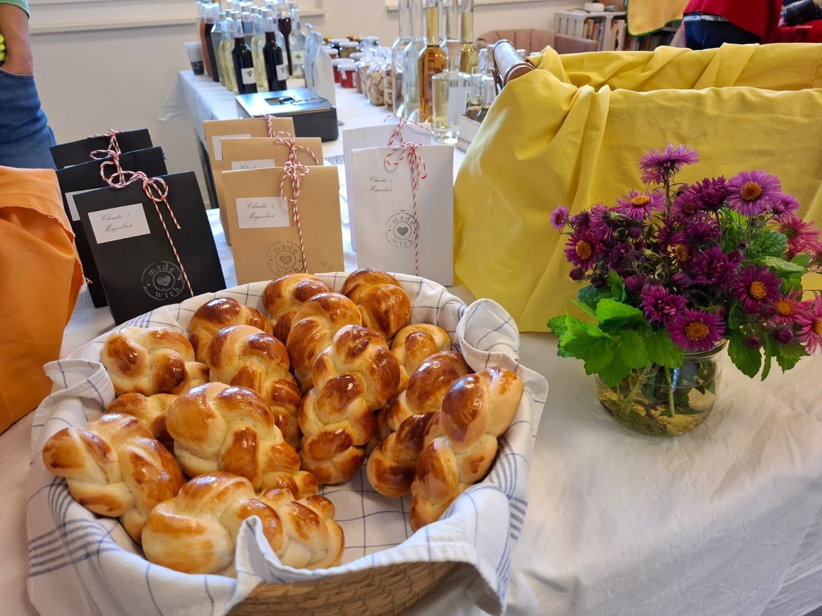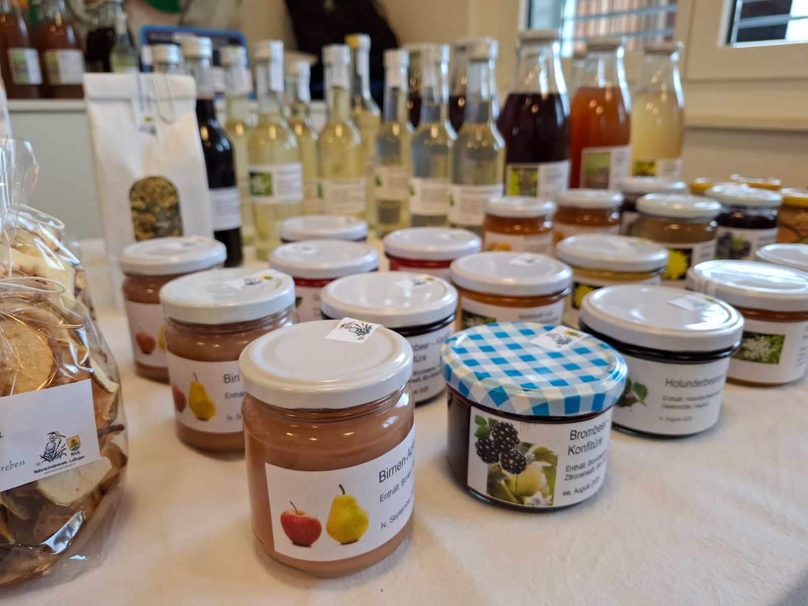 Am Verkaufsstand wurde Selbstgemachtes aus der Gemeinde und der Region verkauft: frisch gepresste Säfte, feine Konfitüren und Honig, Schnäpse, Brote und Zöpfe, Magenbrot und vieles mehr. Und wer noch warme Socken für den Winter brauchte, konnte sich bei den Lufinger Lismifrauen eindecken.